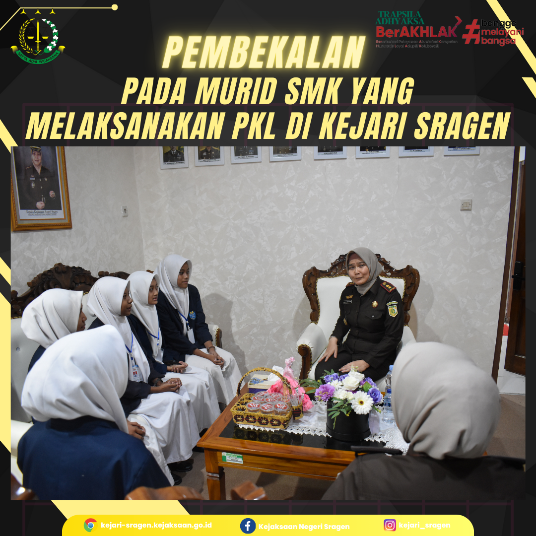 pembekalan kepada Siswi dari SMK 1 Sragen yang melaksanakan Praktik Kerja Lapangan (PKL) di kantor Kejaksaan Negeri Sragen.